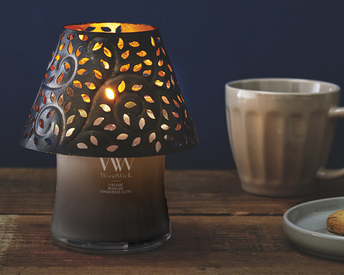 ハースウィック専用のシェード。鉄製のシェードのため、WoodWickの焚き火のようなパチパチ音が反響しやすくなります。熱が逃げにくくなり、中心だけが溶けていくトンネル減少を防ぐことができます。また、炎をカバーするので安全性もアップ!ランプのように見た目もおしゃれになります。オンラインショップはこちら